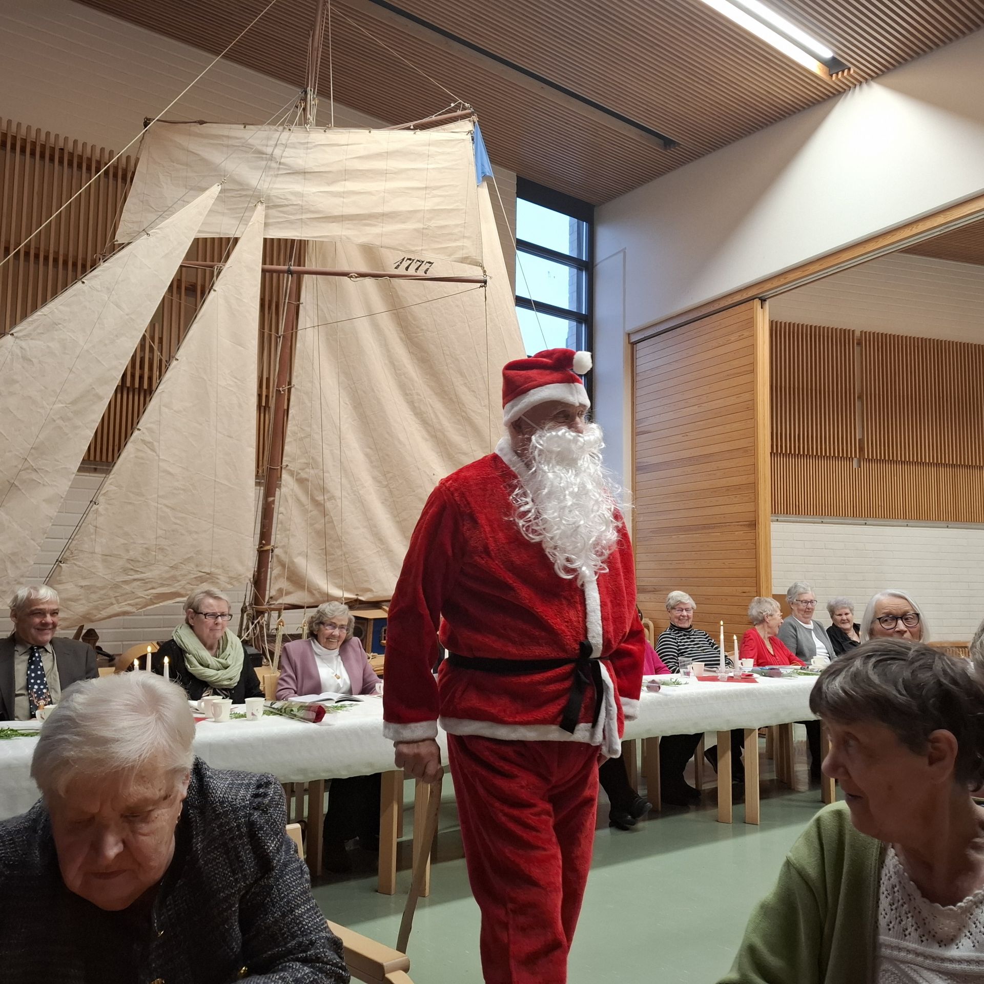 Efter uppvaktningen var det dags för risgrynsgröten med tillhörande russinsoppa. Jultårtorna, som sponsrats av S-market, avnjöts tillsammans med pepparkakor, konfekt, te och kaffe.